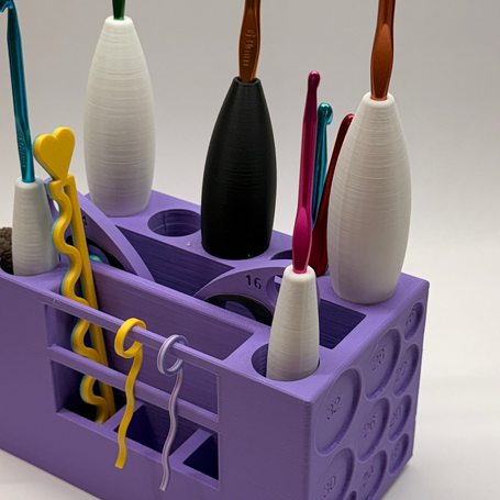 🪡 Storage & Organizers – Compact boxes that hold crochet hooks, knitting needles, stitch markers, and darning needles.