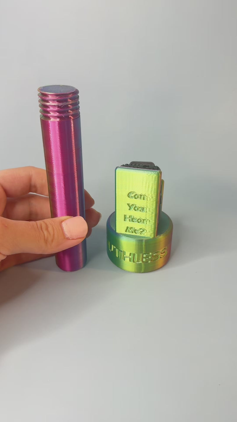 Folder screws into the base so you can use your mini mic as a regular microphone.