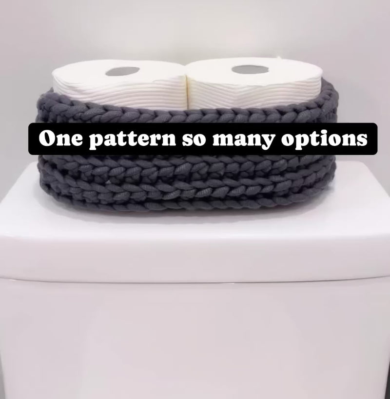 The pattern also shows you how to make a basket for household storage, such as a toilet paper holder.